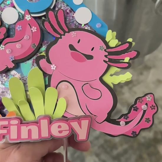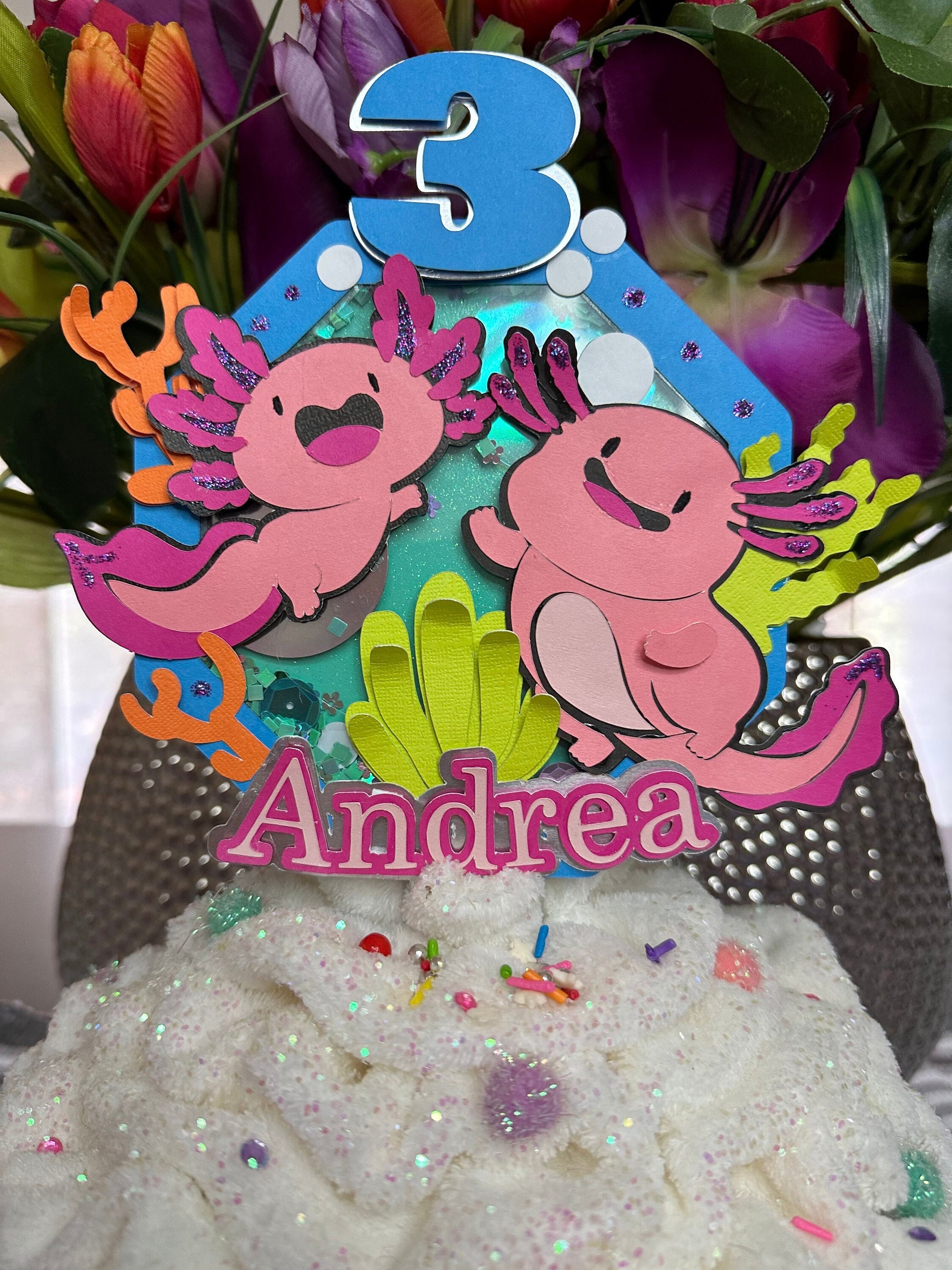Cute Axolotl Inspired Shake Cake Topper, Kids Theme Cake Decoration, Customized