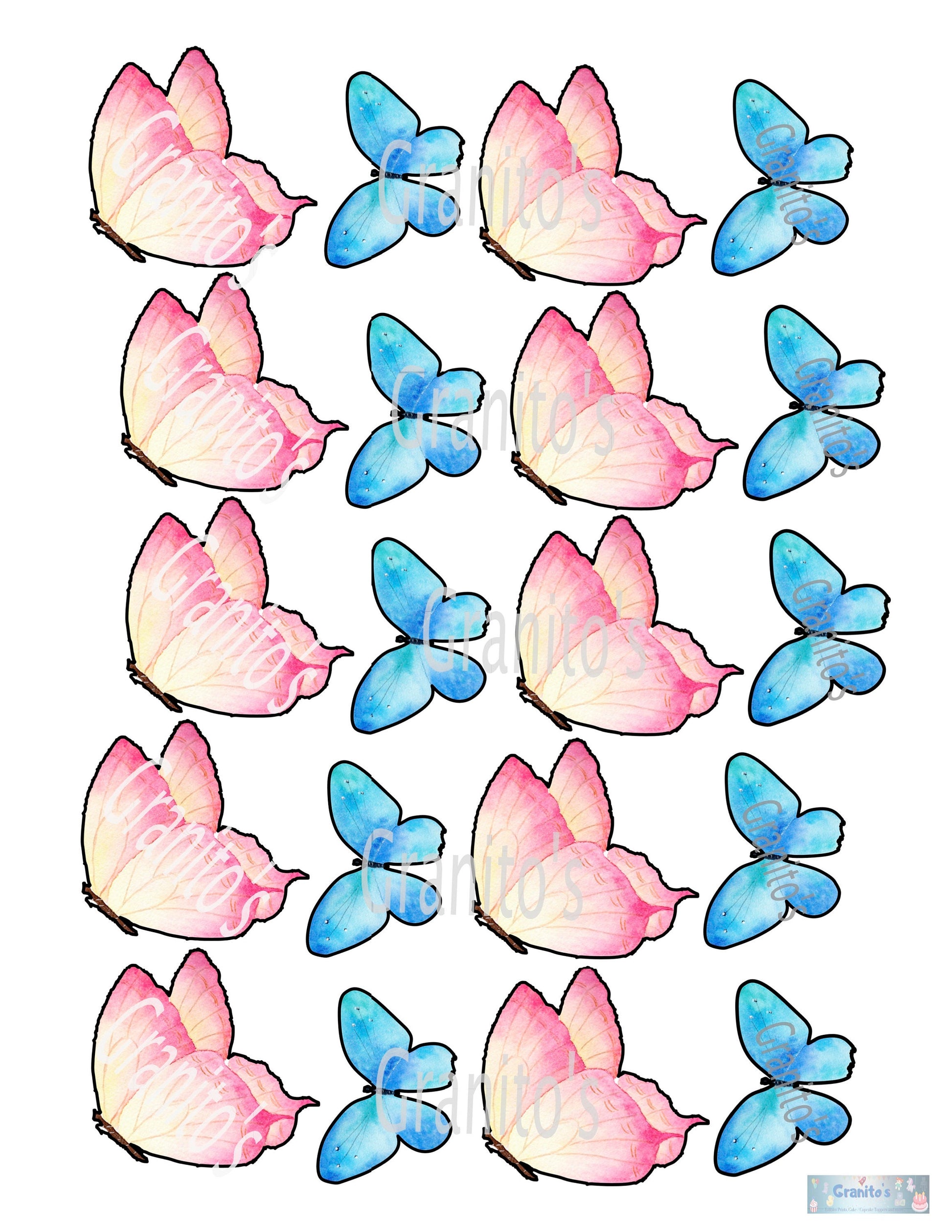 Edible Blue and Pink tones Butterflies Cakes or cupcakes decorations, Trending for Weddings,Birthdays,Baby showers, Gender reveals.