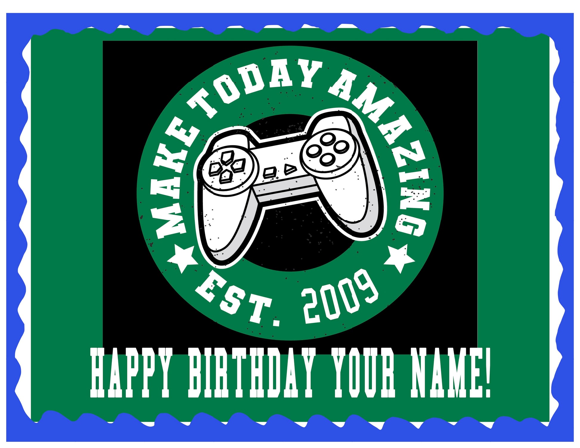 Video Game Edible cake topper, Gamer. Make your Day Amazing. Boys Love it!
